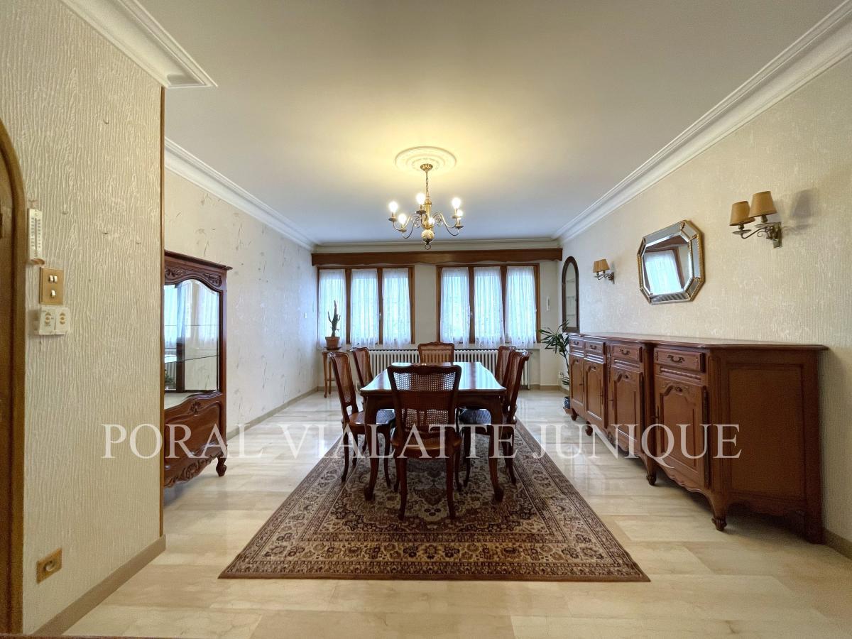 Située dans un secteur résidentiel calme, cette propriété offre un cadre de vie agréable à proximité du centre-ville ! Édifiée sur un terrain de 1 300 m², la maison T5 de 125 m² habitables se compose comme suit : Au rez-de-chaussée : une entrée spacieuse desservant un bureau, une chaufferie / buanderie, un garage double puis une cuisine d'été et un espace avec douche et WC. A l'étage : une cuisine ouvrant sur la terrasse, une salle à manger lumineuse, un séjour (pouvant être transformé en chambre), deux chambres, une lingerie, une salle d'eau et WC séparés. Le terrain vous permettra de profiter d'un espace de stationnement et d'un jardin plat arboré. Classe énergétique : G (514) Logement à consommation énergivore Les informations sur les risques auxquels ce bien est exposé sont disponibles sur le site Géorisques : www. georisques. gouv. fr